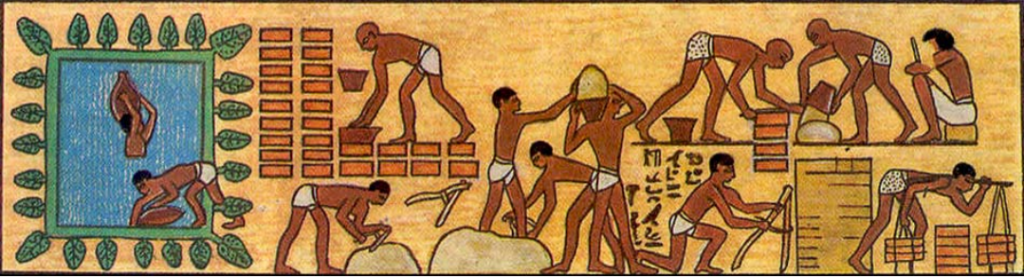 Процесс изготовления кирпича. Изображение из гробницы Рехмира. Около 1500-1450 гг. до н. э. Фивы, Египет