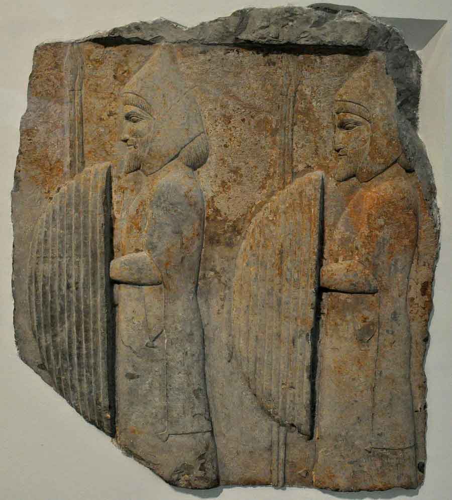 Фото: Пергамский музей, Берлин / Часть барельефа, на котором изображены мужчины со щитами и копьями. Барельеф либо из дворца Дария I (521-486 гг. до н.э.) либо Ксеркса I (485-465 гг. до н.э.)