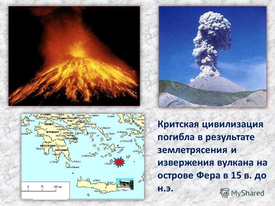 Критская цивилизация погибла в результате землетрясения и извержения вулкана на острове Фера в 15 в. до н.э.