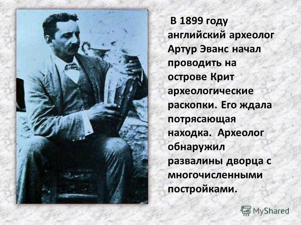 В 1899 году английский археолог Артур Эванс начал проводить на острове Крит археологические раскопки. Его ждала потрясающая находка. Археолог обнаружил развалины дворца с многочисленными постройками.