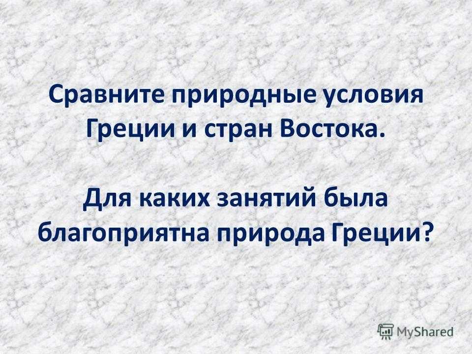 Сравните природные условия Греции и стран Востока. Для каких занятий была благоприятна природа Греции?