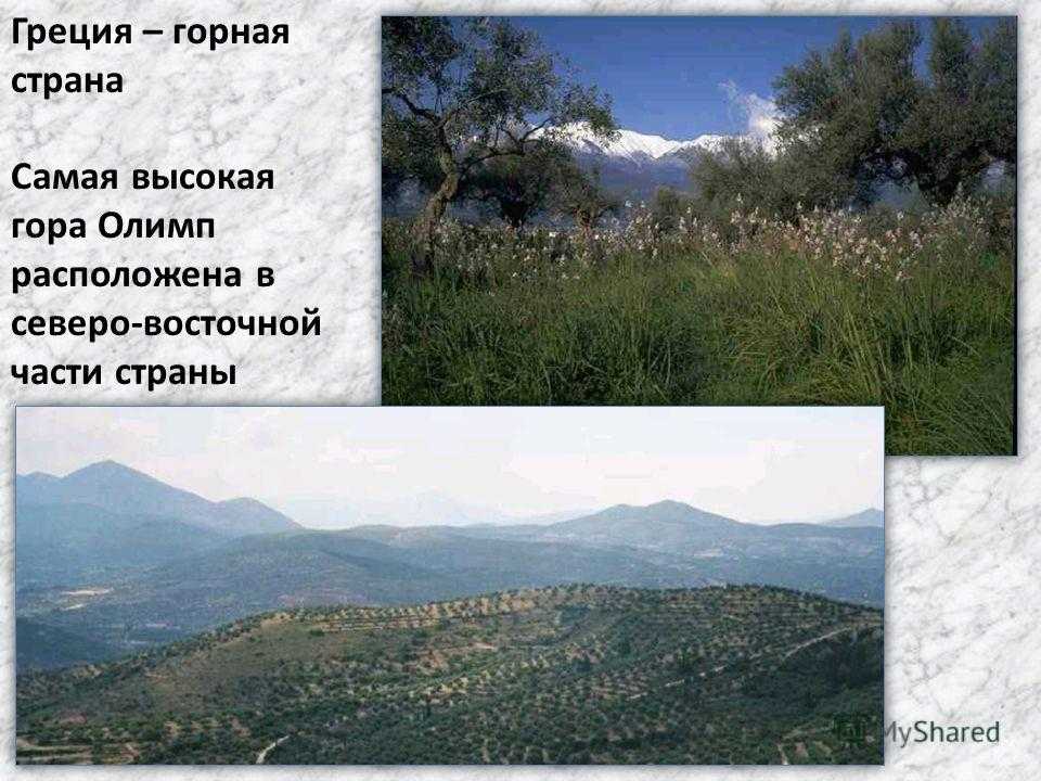 Греция – горная страна Самая высокая гора Олимп расположена в северо-восточной части страны