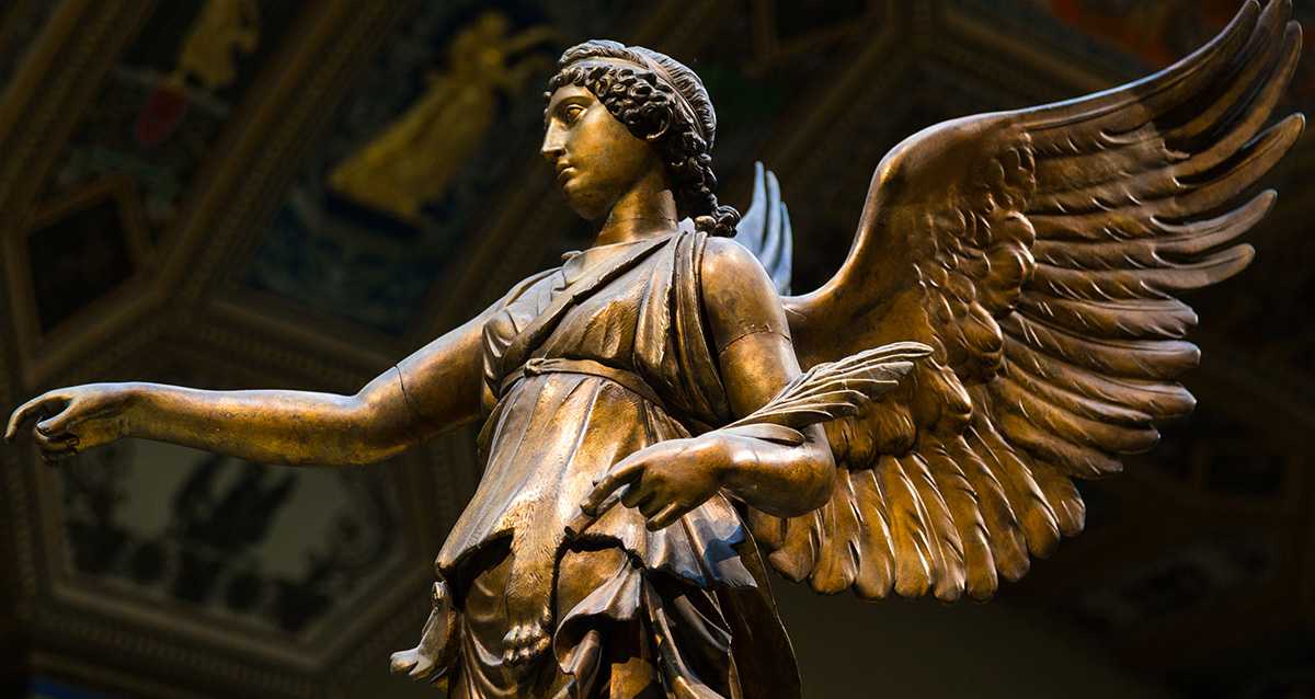 Ника. Богиня победы и постоянная спутница Зевса. Божественный символ успеха и счастливого исхода всегда изображается в позе быстрого движения или с крыльями. Ника принимает участие во всех музыкальных состязаниях, военных предприятиях и религиозных торжествах.