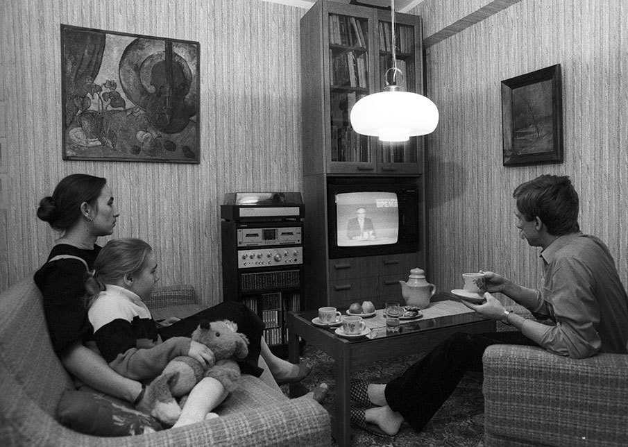 Советские инженеры сделали ставку на механические телевизоры, что привело к технологическому застою. Однако регулярное телевещание (3 канала) в стране советов началось в довоенное время – в 1938 г. Самым массовым считается телевизор КВН, но производство его началось только в послевоенные годы. Первый советский цветной телевизор с последовательной передачей цветных полей (“Радуга”) был аналогом устаревшей к тому времени модели американского телеаппарата.