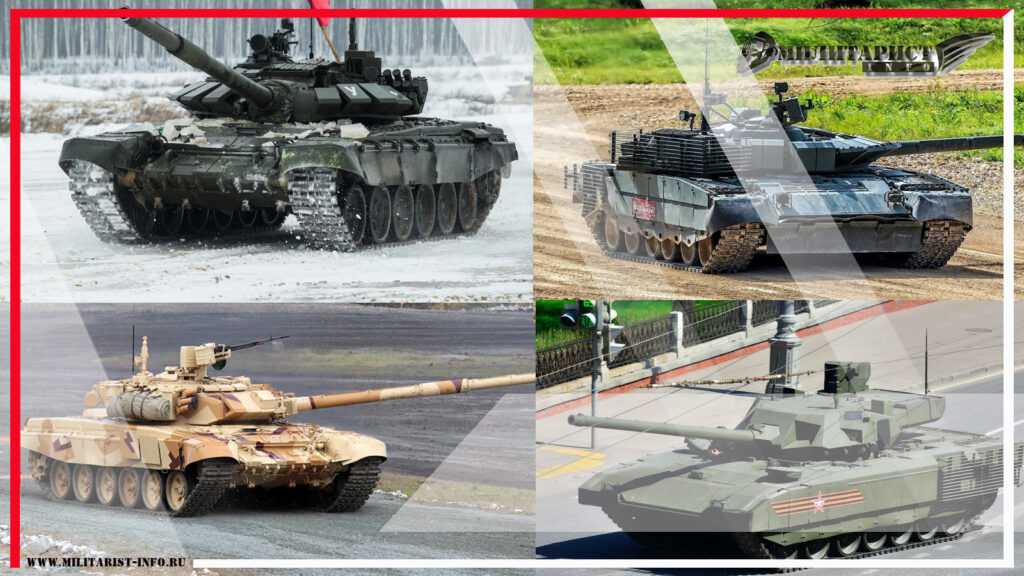 В предыдущем блоке вы могли уже увидеть перечень основных модификаций танков российской армии. Основу «танкового кулака» составляют машины трёх основных типов – Т-72, Т-80 и Т-90. Самый распространенный тип — Т-72Б, БЗ.