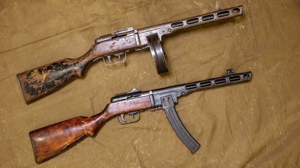 ППШ-41 вверху первой серии обр. 1941 года, внизу второй модифицрованной серии 1942 года.