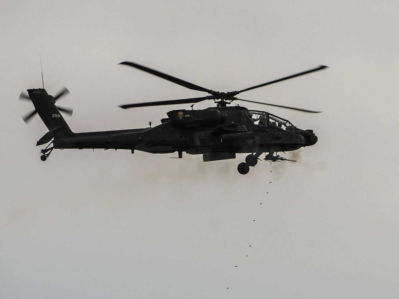 Вертолёт Apache AH-64 во время учений Southern Strike в Camp Shelby. Штат Миссисипи, 18 января 2019 года.