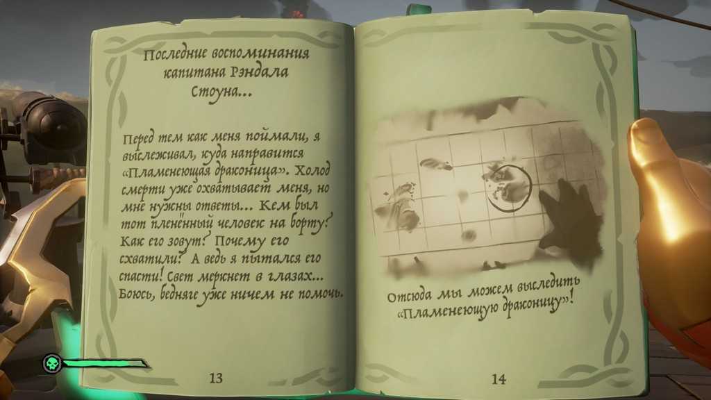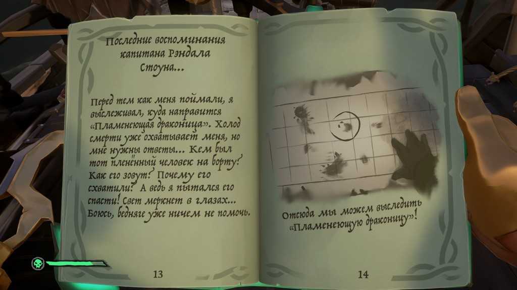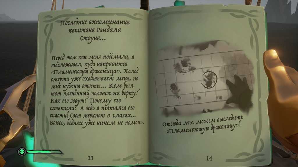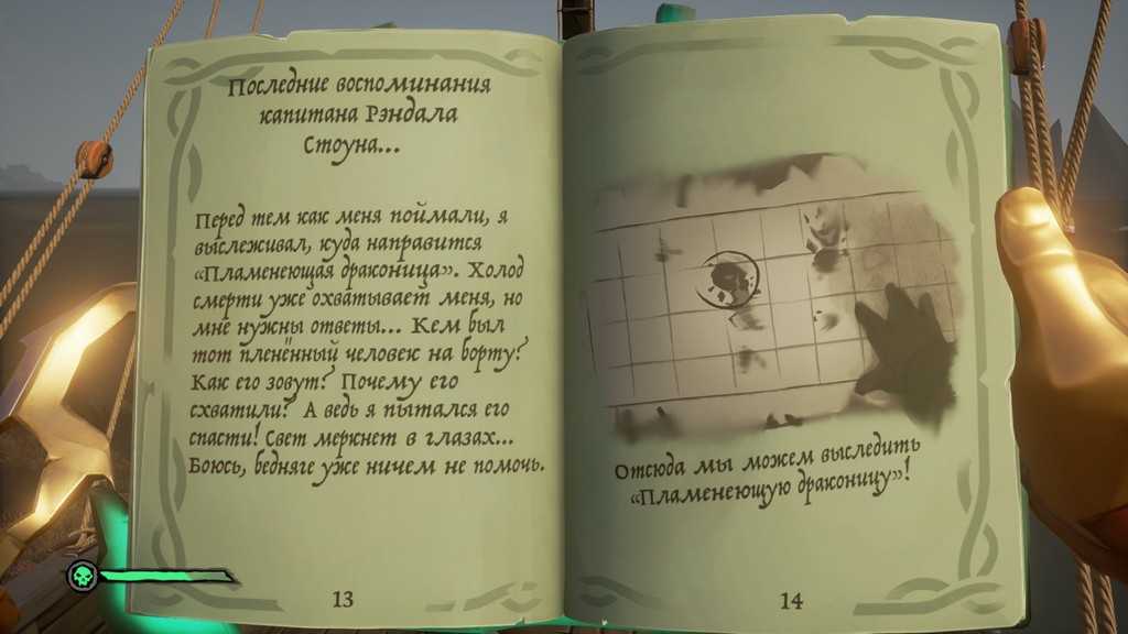 Выслушав историю Рендала, получаем дополнительные записи, в которых, на четырнадцатой странице, говорится, куда отправился корабль Пламенеющая драконица.