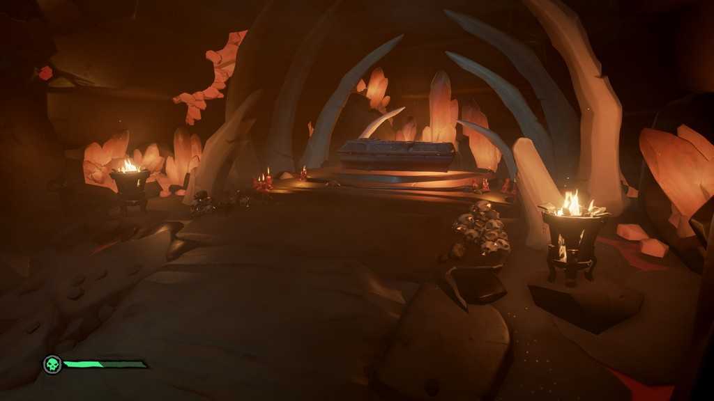 Открыв крышку, забираем последний череп и отправляемся наружу, где нас встретит «теплая компания» из скелетов и капитана Адара: