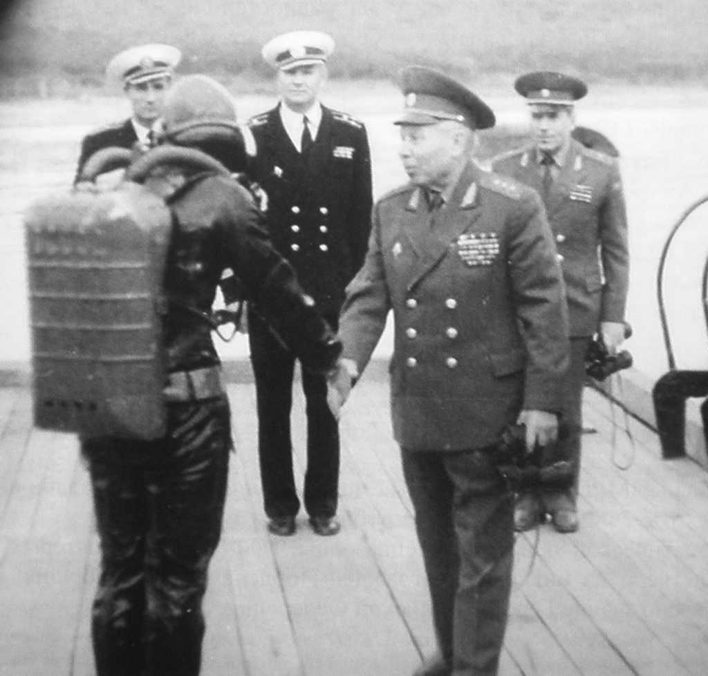 Первый заместитель начальника ГРУ генерал-полковник И. Я. Сидоров принимает доклад командира группы спецназа. Фото: из архива В. М. Федорова