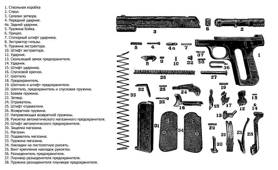 Между тем, в стране еще с «царских» времен имелось довольно много пистолетов (некоторые, например, господам офицерам разрешалось закупать за свой счет вместо штатных «наганов»), а Первая Мировая война и последовавшая за ней Гражданская еще больше разнообразили этот «зоопарк».