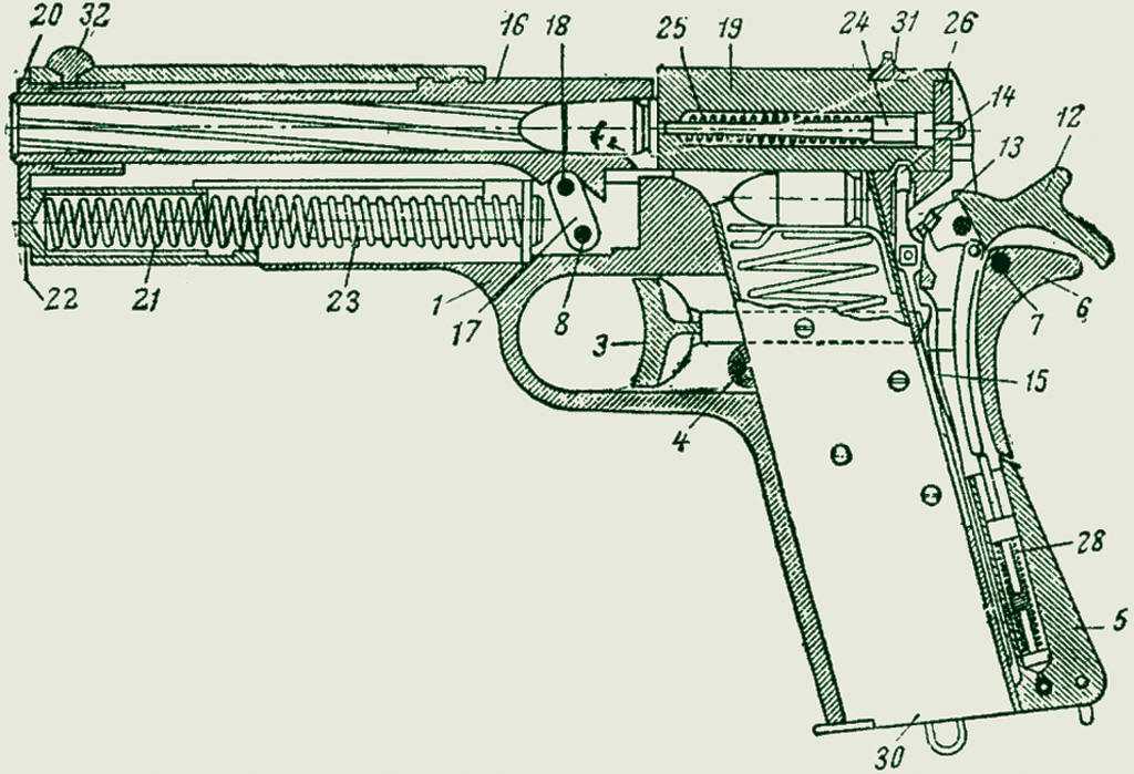вертикальной плоскости, как и в более позднем пистолете ТТ.