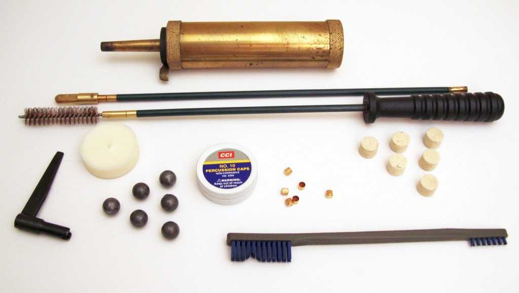 Для обслуживания капсюльных револьверов необходимо иметь минимальный комплект вспомогательных инструментов и приспособлений: пули, капсюли, пыжи, смазка, шомпола-щетки, пороховница с порохом, ниппельный ключ