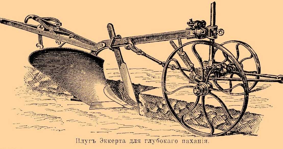 От одного плуга до двух или несколько плугов, скрепленных вместе, что позволяет выполнять больше работы примерно с таким же количеством рабочей силы (или животных). Еще одним достижением был мутный плуг, который позволял пахарю ездить верхом, а не ходить. Такие плуги использовались уже в 1844 году.