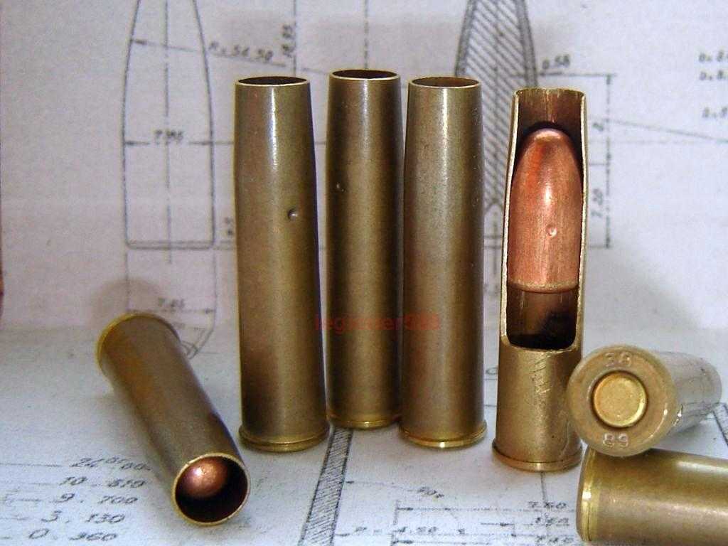 Патрон револьвера Нагана 7,62х38 разработан специально для образца 1895 года. Боеприпас имел узкую горловину гильзы, которая была необходима для заправки канала ствола. Именно благодаря такой конструкции удалось создать модификацию БраМита.