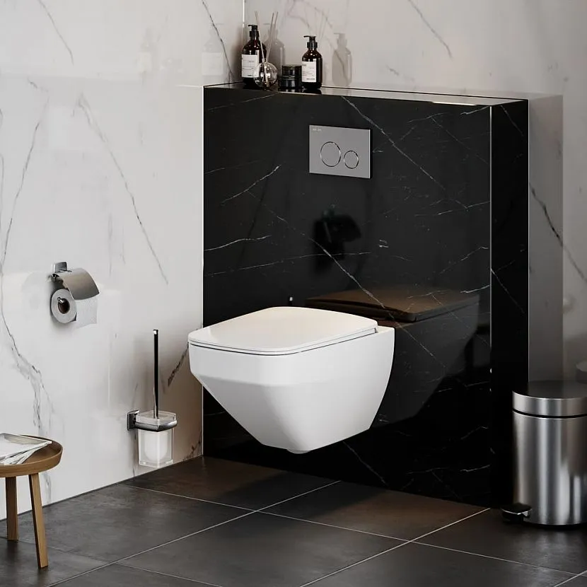 Подвесной унитаз на чёрной стенеИсточник remoo.ru