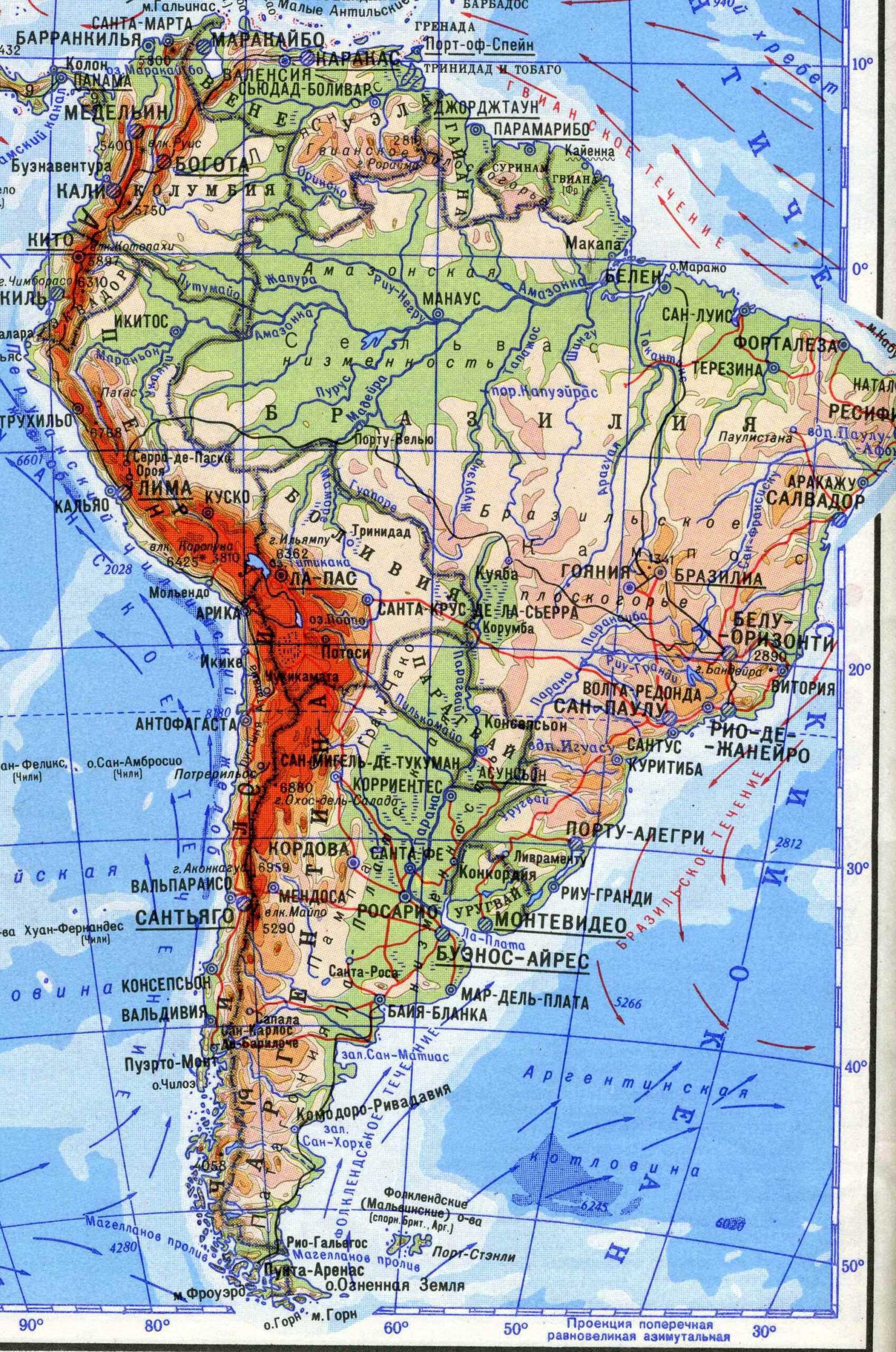Андские Кордильеры на втором месте среди высотных гор мира, они выше 6000 м. Вершины западной части до 2400 м. Горный массив длиннее, чем материк. В ширину, в среднем – 2500 м.