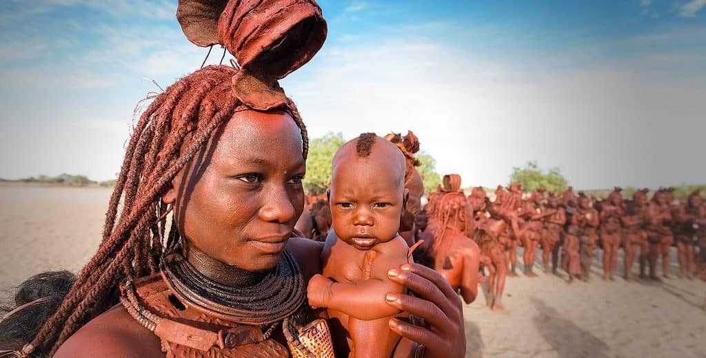 Несколько сотен лет назад народ племени Химба переселился на север Намибии, где сейчас обитает, из районов восточной Африки. Район их проживания – полубезжизненные пустыни с выраженным дефицитом воды. Несмотря на жесткие условия существования менять образ жизни химба не желают и живут так, как им хочется – свободно, независимо, поддерживая традиции и обычаи предков в неизменном виде.