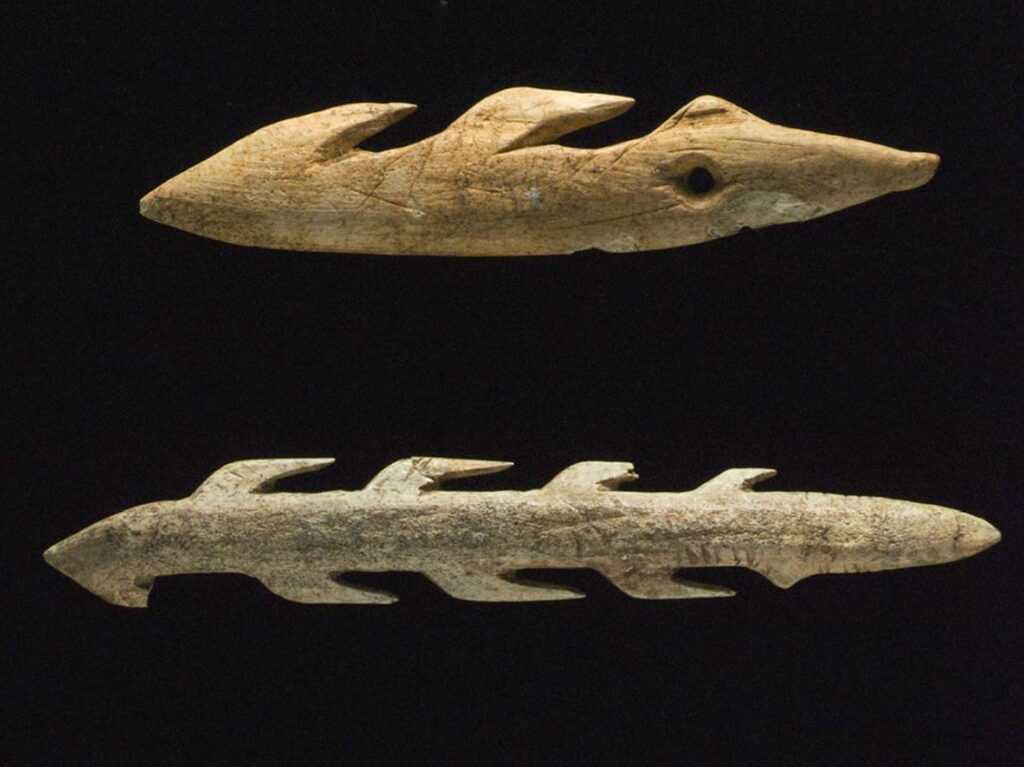 Оружие кроманьонцев (слева — копья и стрелы, справа — гарпун)