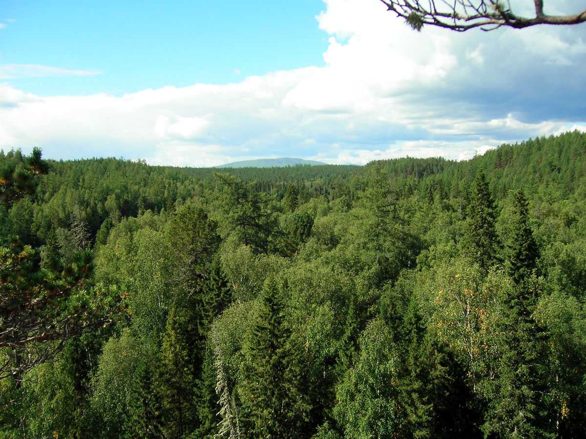 На севере из растений встречаются мхи и лишайники. Но по мере продвижения к тундре появляются небольшие деревья и кустарники. В регионе обитают олени, волки, зайцы, лисы.