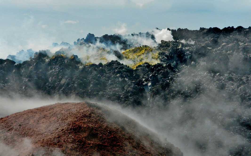 При извержении магмы по трещинам формируются огромные лавовые поля. Такие явления наблюдались в Америке, на полуострове Индостан, очень часто бывают на острове Исландия.