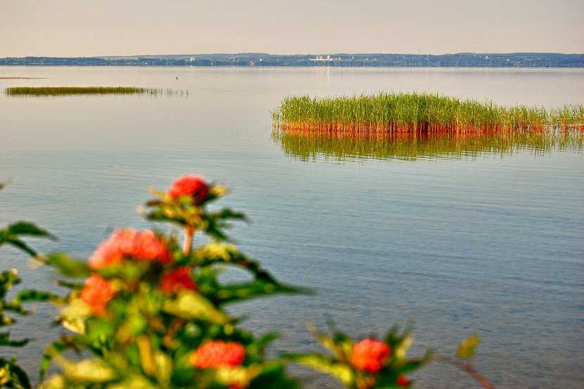 Водоем почти овальной формы имеет размеры 9,5 на 6,5 км. Его береговая линия протянулась на 27 км, и лежит оно на высоте в 170 м над уровнем моря. В озеро приносят свои воды 19 рек и ручьев, самая большая из которых – река Трубеж. А вытекает из него только Векса.