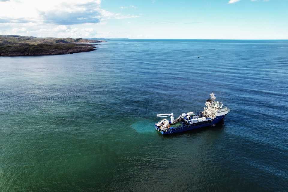 Судно-кабелеукладчик с подводным оптоволоконным кабелем на борту возле села Териберка в Мурманской области начинает прокладку трансарктической волоконно-оптической линии связи Мурманск – Владивосток проекта «Полярный экспресс». Оптоволоконная линия между Европой и Азией станет альтернативой спутниковой связи в северных широтах. Фото: Павел Львов / РИА Новости