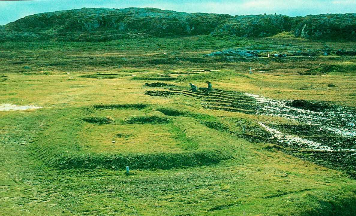 И вот однажды он приехал в маленькую рыбацкую деревушку под названием Анс-о-Мидоуз. Это был район лесов, низких волнообразных холмов, небольших озер и широко раскинувшихся лугов. Место было очень похоже на то, что описывалось в саге. Один рыбак, Джордж Деккер, повел Ингстада к расположенной неподалеку бухте Эпав. Возле маленькой речушки он показал чуть заметные очертания стоявших здесь когда-то домов и насыпей. Ингстаду показалось, что это именно такое место, в каких любили селиться викинги, — с обширными пастбищами, чистой водой и близостью моря. Он вспомнил гренландские поселения, расположенные в очень похожих местах. Но только археологические раскопки могли ответить на вопрос, действительно ли это то самое место, где жили викинги.
