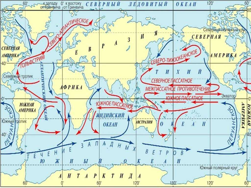 Поскольку Атлантический океан вытянут по вертикали, его основные течения также направлены с севера на юг и обратно.