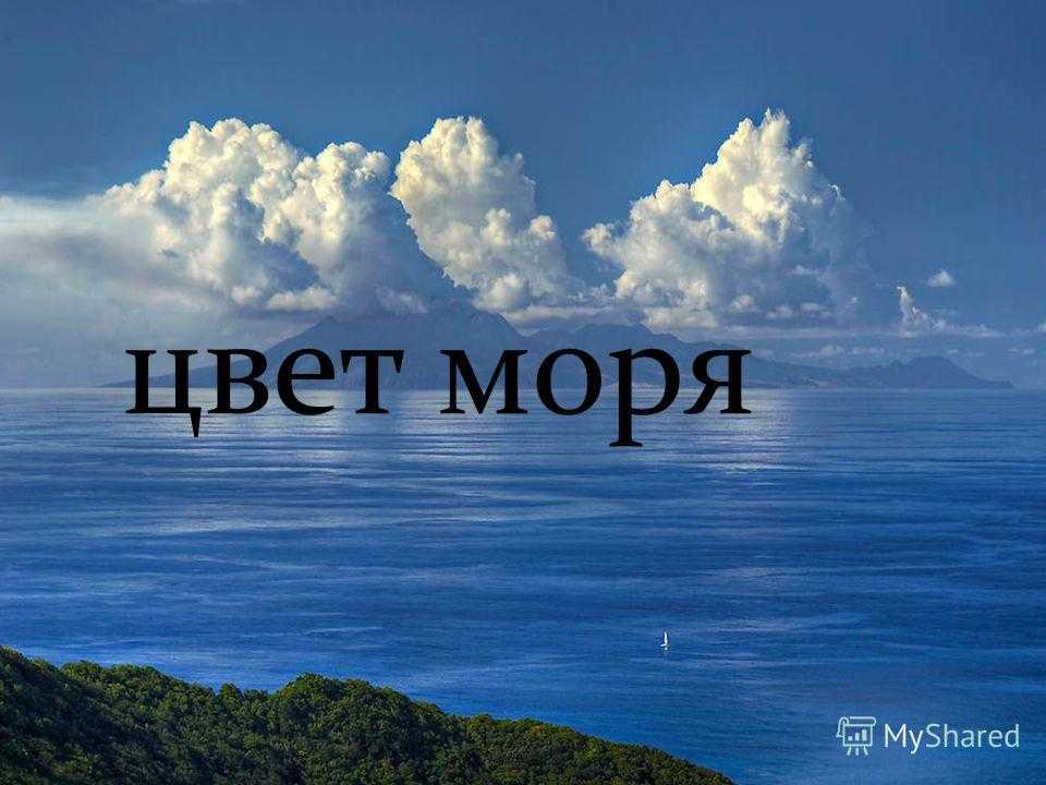 Презентация на тему: » Цвет моря От чего зависит цвет морской воды На географических картах моря и океаны синего цвета. В действительности же их цвет имеет множество оттенков:» — Транскрипт: