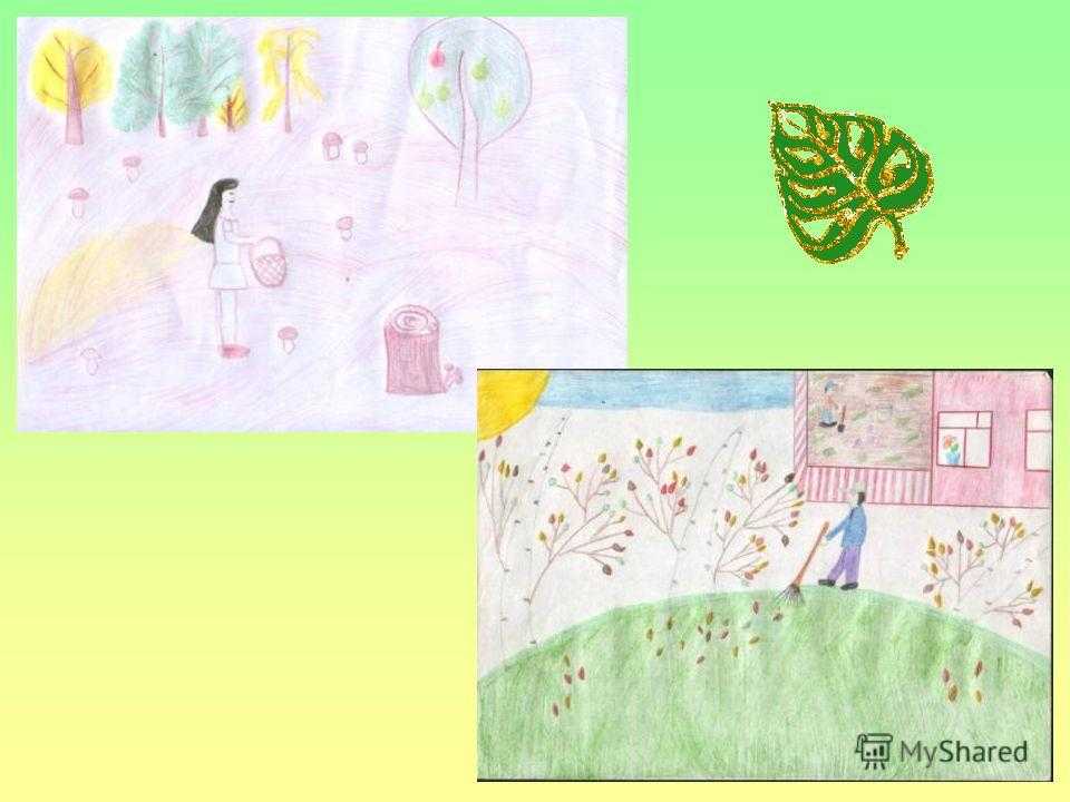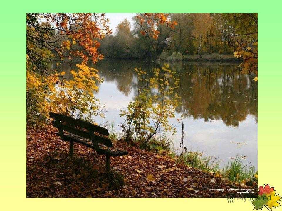 Презентация на тему: » Солнце скрыто за тучами. Идёт мелкий моросящий дождь. Косяк журавлей, курлыча, пролетает над лесом. Порывистый ветер срывает с деревьев последние листочки.» — Транскрипт: