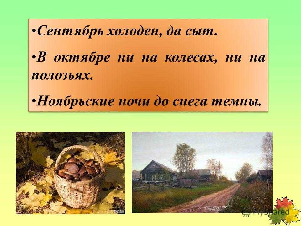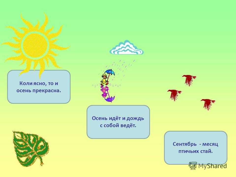 Коли ясно, то и осень прекрасна. Осень идёт и дождь с собой ведёт. Сентябрь — месяц птичьих стай.