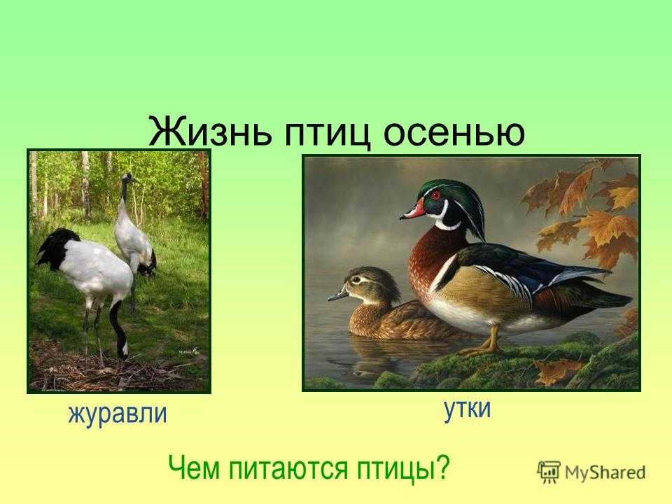 Жизнь птиц осенью Чем питаются птицы? журавли утки