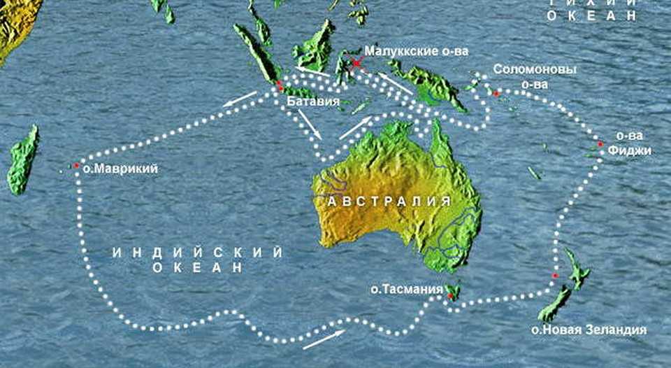 Ост-Индская компания занималась торговлей специями и пряностями, ценившимися в Европе XVII века на вес золота. Дальнейшая судьба Абеля Тасмана была связана с Батавией (Batavia) – столицей колонии Нидерландов на территории острова Ява, называвшейся тогда Нидерландской Индией (Nederlands India). Сейчас бывшая Батавия – это Джакарта, столица Индонезии.