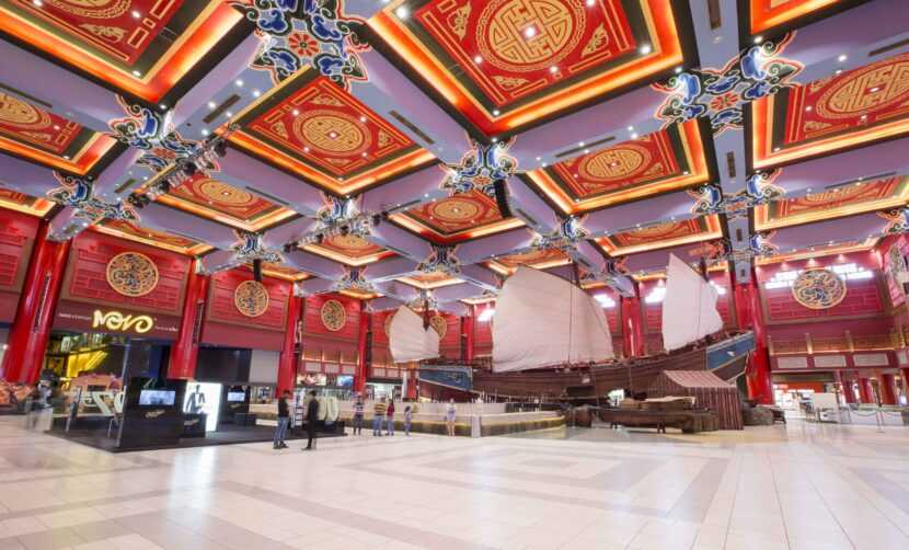 В центре дворика находится гигантский корабль, посвященный великому исследователю, а внутренние помещения двора украшены гигантскими медальонами дракона и китайскими символами.