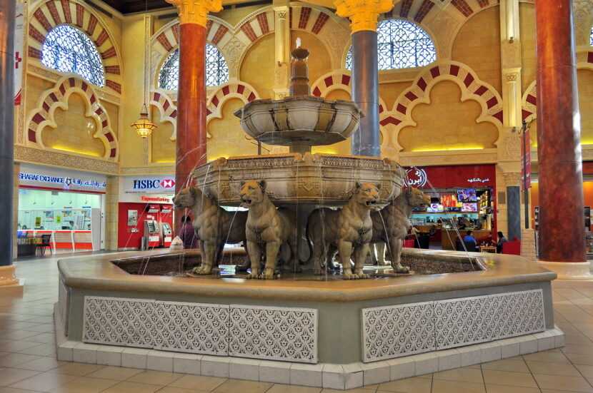Экскурсия по торговому центру заканчивается андалузским двором, который отличается звездообразным потолком и фонтаном со статуями львов.