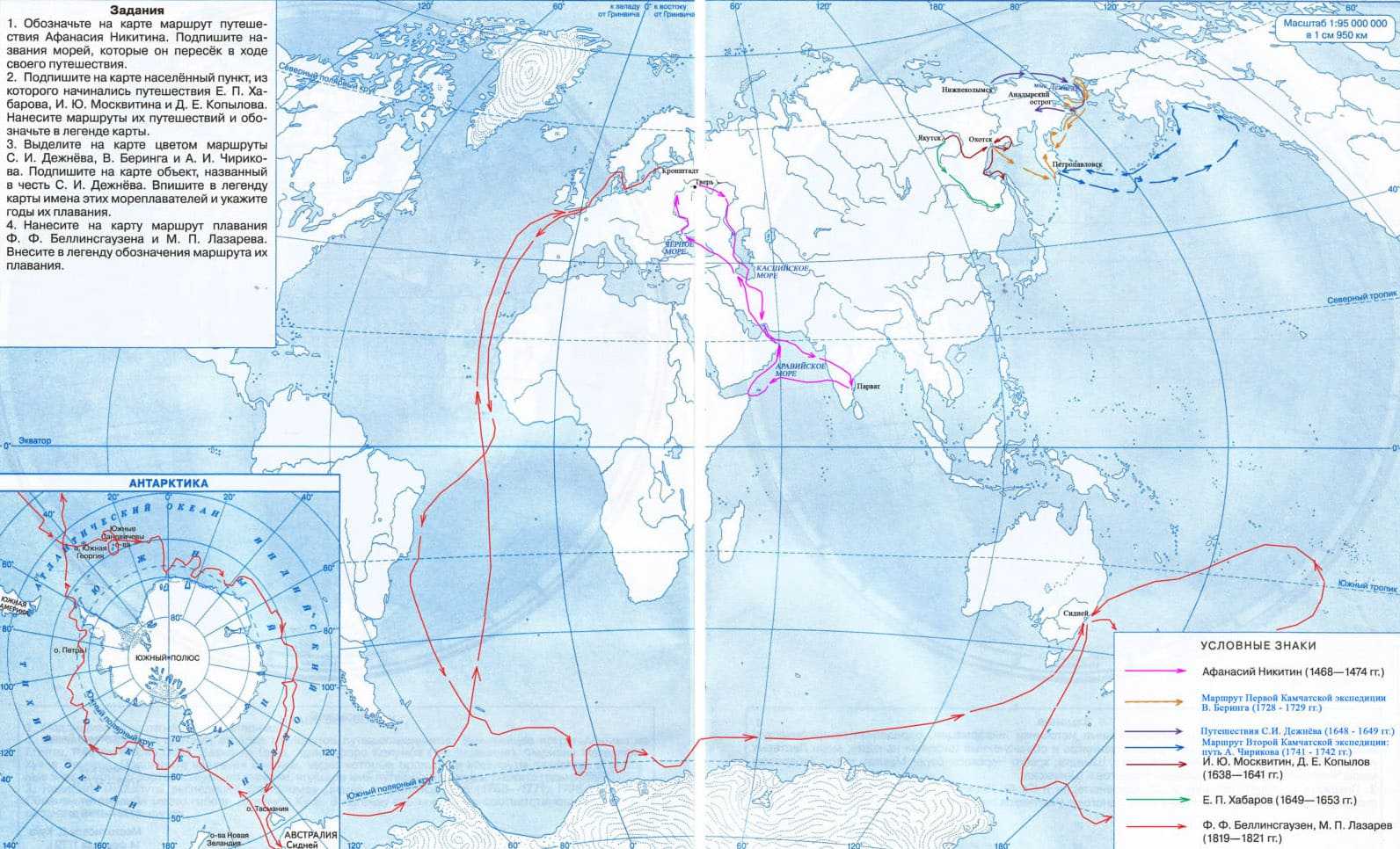 Ответы к страницам контурных карт 4 — 5. Открытия русских путешественников