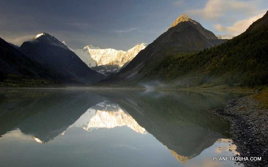 Озеро Ак-Кем на рассвете — Вид на Белуху
