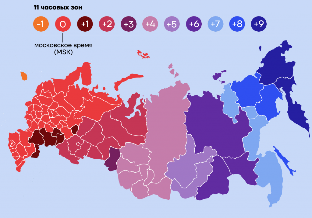 В старых источниках вы можете наткнуться на то, что у нас 9 часовых поясов, однако так было до 2015.