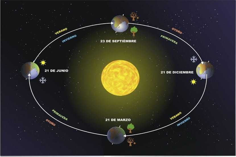 Путь, который наша планета делает до Солнца, называется эклиптикой. и проходит над экватором ранней весной и осенью. Они называются равноденствия. В таком положении день и ночь продолжаются одинаково. В наиболее удаленных от эклиптики точках находим летнее солнцестояние и зима. В эти моменты день длиннее, а ночь короче (во время летнего солнцестояния), а ночь длиннее с самым коротким днем (в период зимнего солнцестояния). На этом этапе солнечные лучи падают более вертикально на одно из полушарий, нагревая его сильнее. Следовательно, если в северном полушарии зима, на юге — лето, и наоборот.