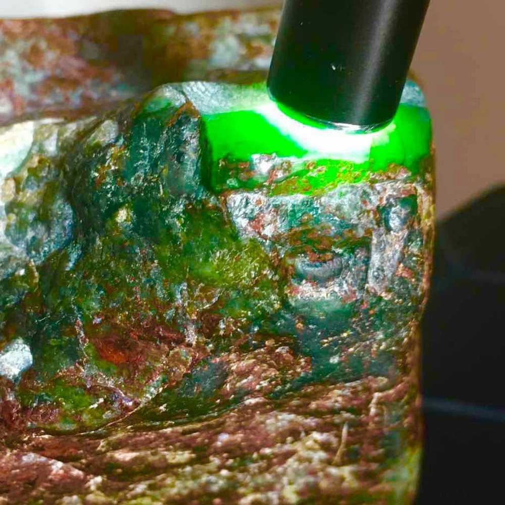 Чтобы определить подлинность, необходимо взять лупу и поднести камень к яркому источнику света. При многократном увеличении в жадеите обнаруживаются характерные для этого минерала волокнистые структуры.
